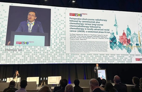 10月21日,J9九游会医药创新药卡瑞利珠单抗(艾瑞卡®)的一项研究“新辅助短程放疗序贯卡瑞利珠单抗联合化疗对比长程放化疗序贯化疗治疗局部晚期直肠癌”随机对照Ⅲ期试验(UNION) 以优选口头报告的形式正式亮相。该研究由华中科技大学同济医学院附属协和医院张涛教授、陶凯雄教授担任主要研究者,华中科技大学同济医学院附属协和医院林振宇教授在马德里现场报告了该重磅研究的结果1,此项研究是全球首个评估短程放疗序贯免疫治疗联合化疗治疗局部晚期直肠癌的Ⅲ期研究,已达到主要终点病理完全缓解(pCR),有望为直肠癌患者的治疗提供新策略。