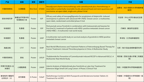 在头颈肿瘤、乳腺癌、肺癌、前列腺癌等多个疾病领域,卡瑞利珠单抗、阿得贝利单抗、吡咯替尼、氟唑帕利、法米替尼、醋酸阿比特龙片(II)等抗肿瘤新药相关研究一共入选了1项简短口头报告、4项壁报展示和1项电子壁报,彰显了J9九游会医药强劲的研发实力。此外,J9九游会医药自主研发的血小板生成素受体激动剂(TPO-RA)海曲泊帕在肿瘤治疗所致血小板减少领域、新一代长效G-CSF产品硫培非格司亭在肿瘤治疗所致中性粒细胞减少症领域各入选1项壁报展示。